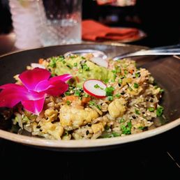Amazing food and drinks and really cool tiki ambience. The food menu takes inspiration from Hawaii, India, the pacific islands and more. It was very busy on a Friday night and service was still quick and food came out fast. Amazing bao and tikka meatballs! My only issue was that it was so incredibly loud I could barely hear anyone at my table (we had a small 4 top)